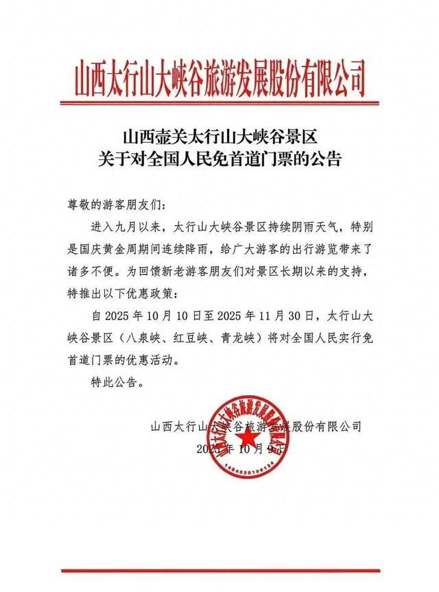 配资门户官方网站首页 好消息!山西两个景区面向全国游客免门票啦